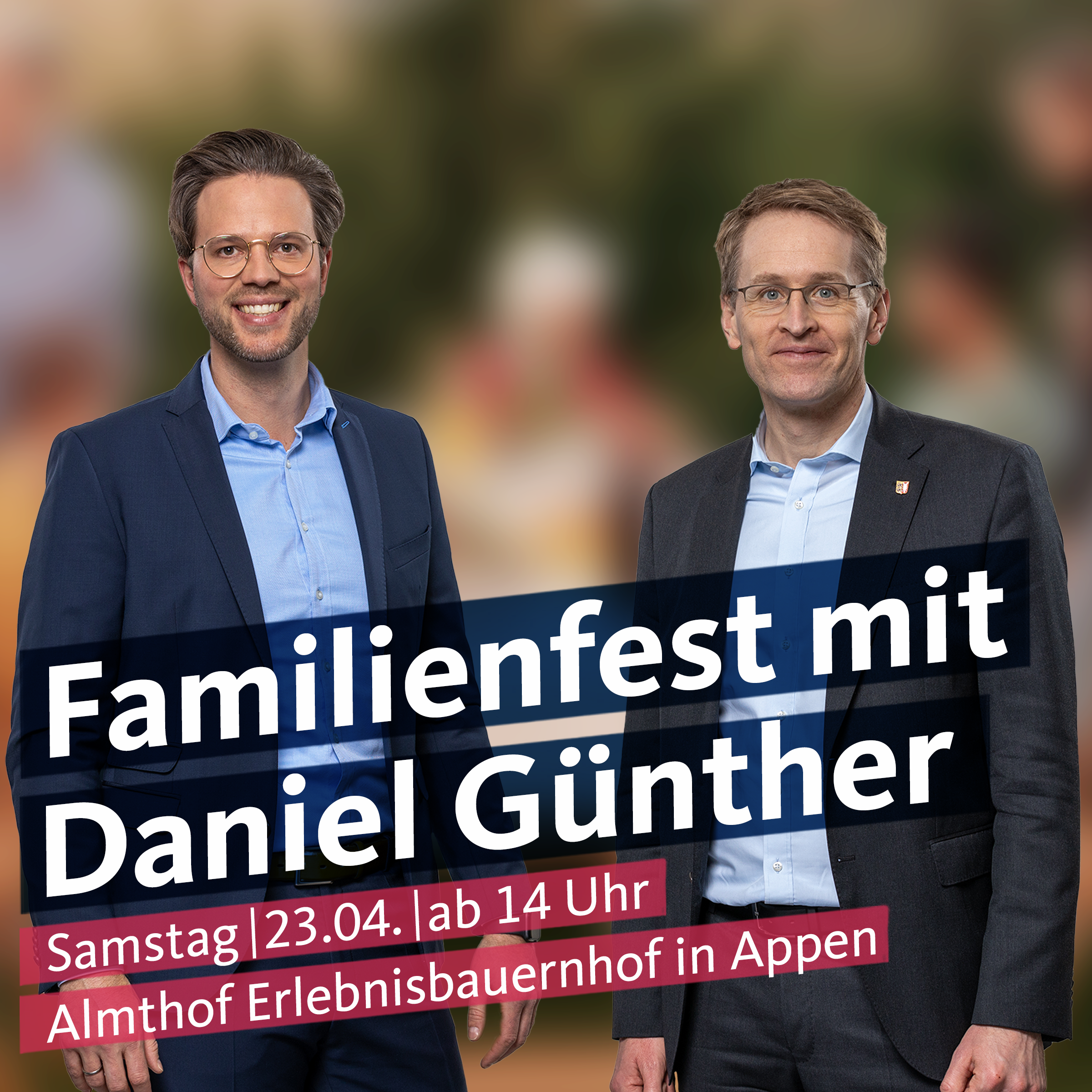 Am Sonnabend, 23. April, kommt der CDU-Landesvorsitzende und Spitzenkandidat Daniel Günther auf den Almthof nach Appen. Martin Balasus, CDU-Landtagskandidat für den Wahlkreis Pinneberg Elbmarschen, zu dem auch Appen gehört, und sein Team haben ein großes Familienfest organisiert, das um 14 Uhr auf dem Erlebnisbauernhof Almtweg 14 beginnen wird.